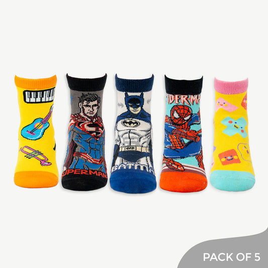 Musical Trio - Ankle Socks including Batman, Superman ,Spiderman ,Cute shapes ,Music - Pack of 5